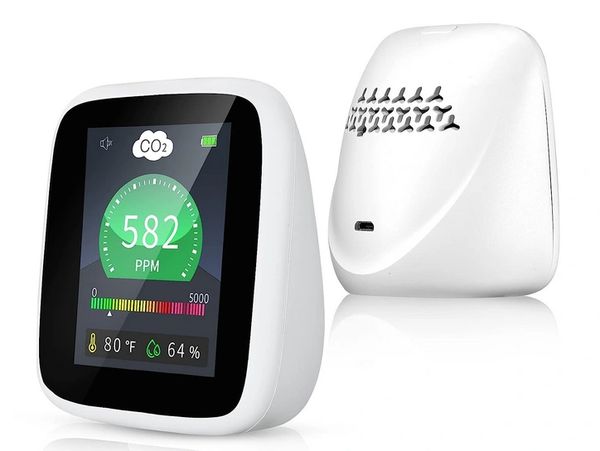 This Farad CO2 Carbon Dioxide Detector Indoor Air Quality Monitor, developed in partnership with Langkou displays relative humidity and temperature. Includes alarm for excessive CO2 presence. Uses advanced NDIR technology to detect carbon dioxide content accurately and quickly. Each time you turn it on, the CO2 detector automatically calibrates for proper functioning. This unit is indispensable for families. It helps to detect gas and air pollution and to keep you and your loved ones safe. Best of all, it is rechargeable. The detector can be purchased in our Farad Store or directly from Amazon.